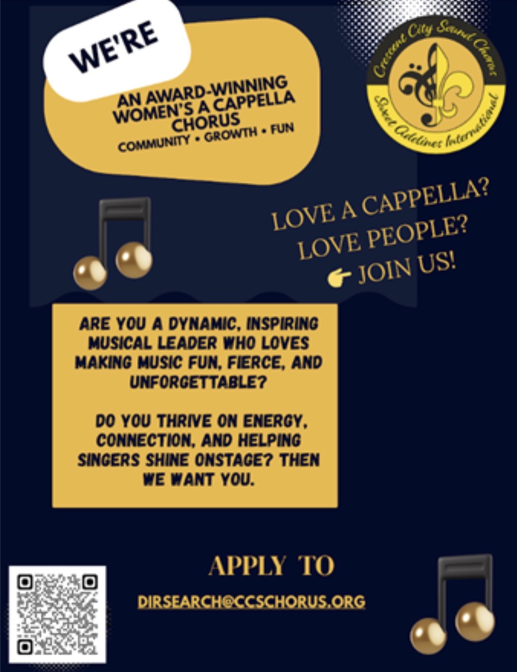 Win puts Crescent City Sound Chorus on the way to the world competition The all-female Crescent City Sound Chorus recently won the title as the top small chorus in the ... more